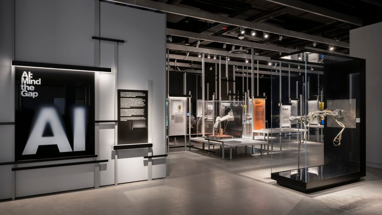 AI: Mind the Gap is on view at the MIT Museum in Kendall Square, Cambridge, a facility designed to showcase cutting‑edge research and interactive public exhibitions. The exhibition is set within a spiral gallery system created by Studio Joseph, with media design by Bluecadet and a distinctive graphic identity by Pentagram. The MIT Museum opened this 56,000‑square‑foot building in October 2022, underscoring the Institute’s commitment to public engagement in science, technology, and design. AI: Mind the Gap is part of a suite of thematically distinct galleries—including Essential MIT and Gene Cultures—together featuring more than 25,000 square feet of graphic panels, custom infographics, and interactive labels that support hands‑on learning and critical exploration.