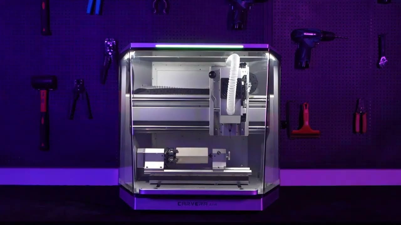 The Carvera Air, also funded through a Kickstarter campaign, is the smaller and far more affordable version of its predecessor, Makera’s original Carvera. The Carvera Air is attempting to solve a series of issues that tend to plague desktop CNC machinery, including the rigidity of the (typically) aluminum frame, the spindle, and the software.