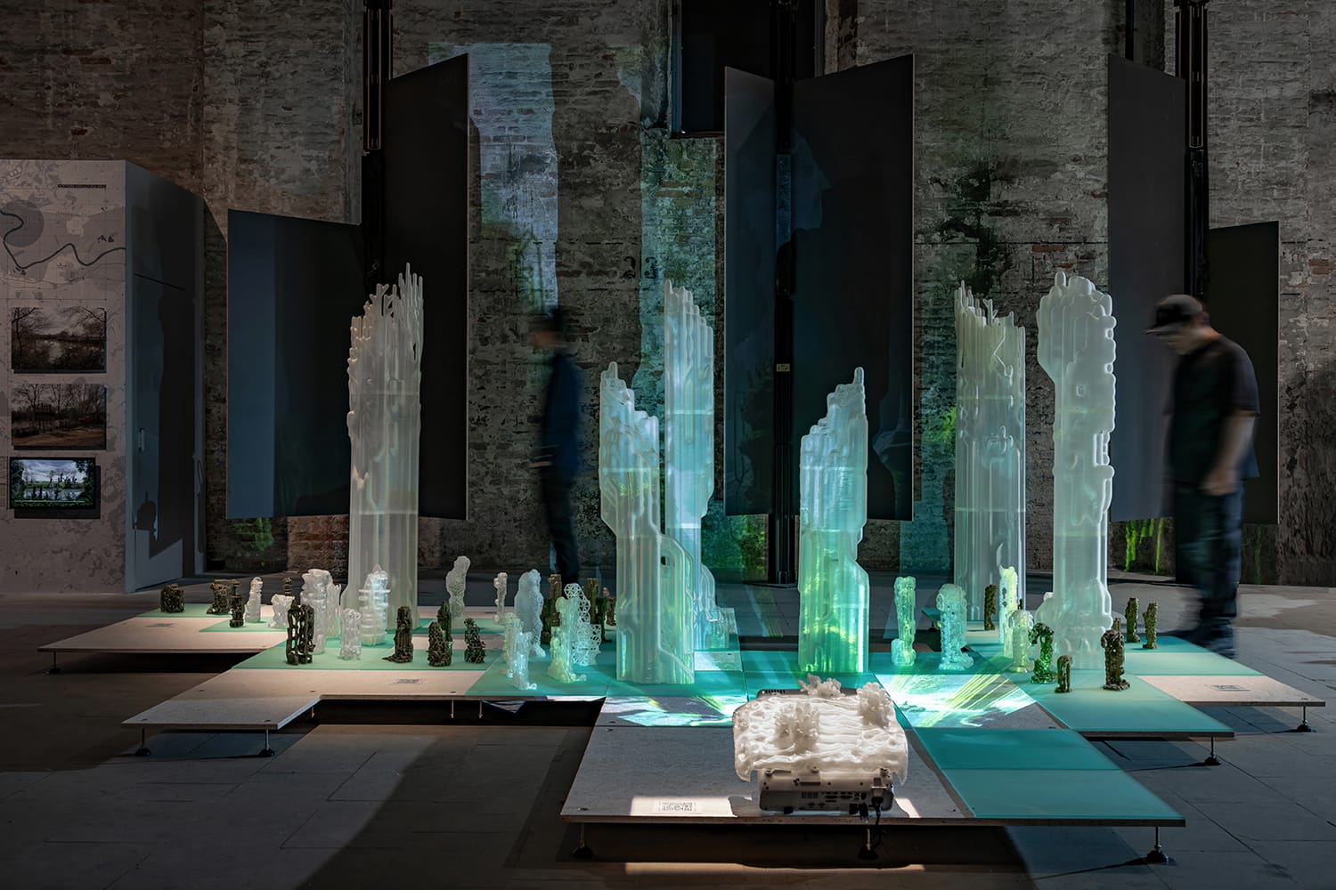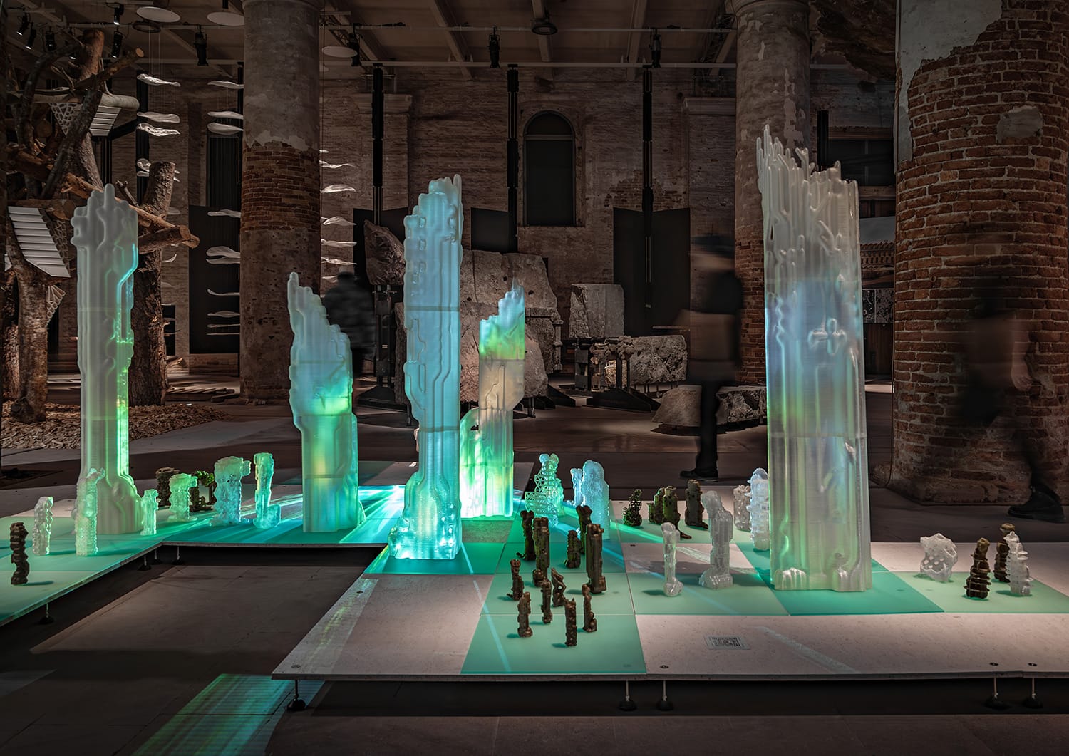 Set in the historic Arsenale, FundamentAI isn’t just another sustainability concept dressed up in parametric curves. It’s a responsive, microbial, data-fed installation that reimagines the physical foundation of cities in the face of environmental collapse. It doesn’t simulate ecology—it collaborates with it.