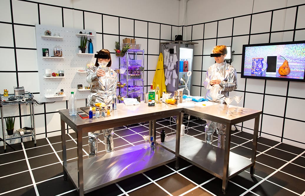 Similarly, Emilie Baltz explores the construction of narrative through taste, smell, and touch, using food as a central storytelling medium. Her work challenges conventional storytelling by transforming food into an interactive experience, inviting audiences to consume, taste, and even participate in her narratives. In her AI powered project EAT | TECH | KITCHEN, done in collaboration with Klasien van de Zandschulp reimagined stories of the Futurist Cookbook into 21st Century interactive experiences. Baltz’s installations and performances make storytelling multisensory, creating vivid, memorable interactions that leave lasting impressions on participants. Baltz routinely uses food not only as sustenance but as a means to evoke emotions, memories, and sensory engagement, inviting audiences into a more immersive and personal connection with the story.