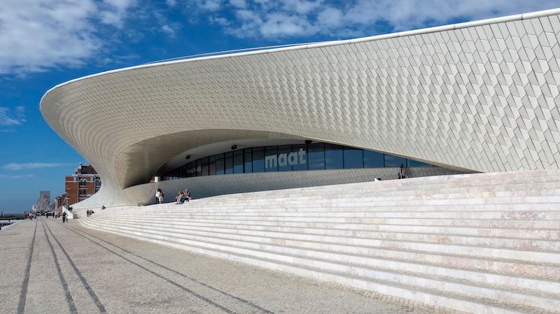 Located on the River Tagus (Rio Tejo) in the city of Lisbon the Museum of Art, Architecture and Technology (MAAT) is a 21st-century cultural hub for creative works traversing art, architecture, and technology. Designed by Amanda Levete Architects (AL_A), MAAT has been described as “one of Europe’s most lyrical new museums.”