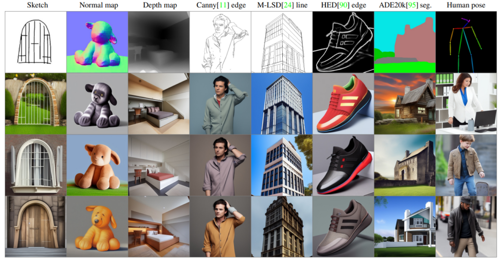 Node-based AI interfaces have become particularly influential because they allow users to construct visual workflows that resemble production pipelines used in animation or visual effects. Instead of issuing a single prompt to generate an image, users can chain together multiple processes: generating an image, modifying it through image-to-image diffusion, guiding the structure with pose estimation, or altering color and composition through additional model passes. One widely adopted extension of diffusion models is ControlNet, introduced in 2023 by Lvmin Zhang and collaborators. ControlNet allows diffusion systems to follow structural guidance derived from inputs such as edge maps, depth maps, or human pose estimation. This capability gives artists much finer control over the layout and composition of generated imagery.