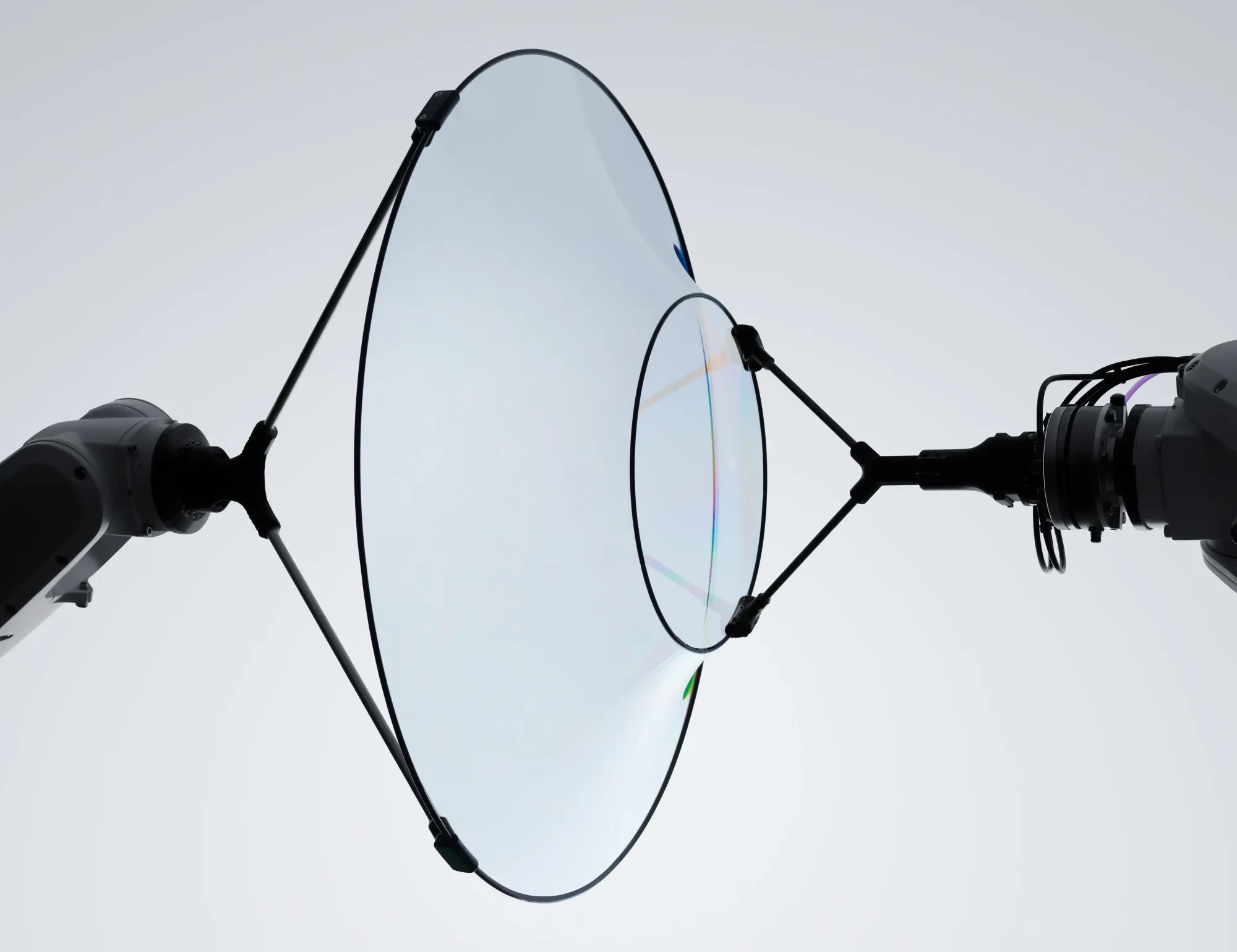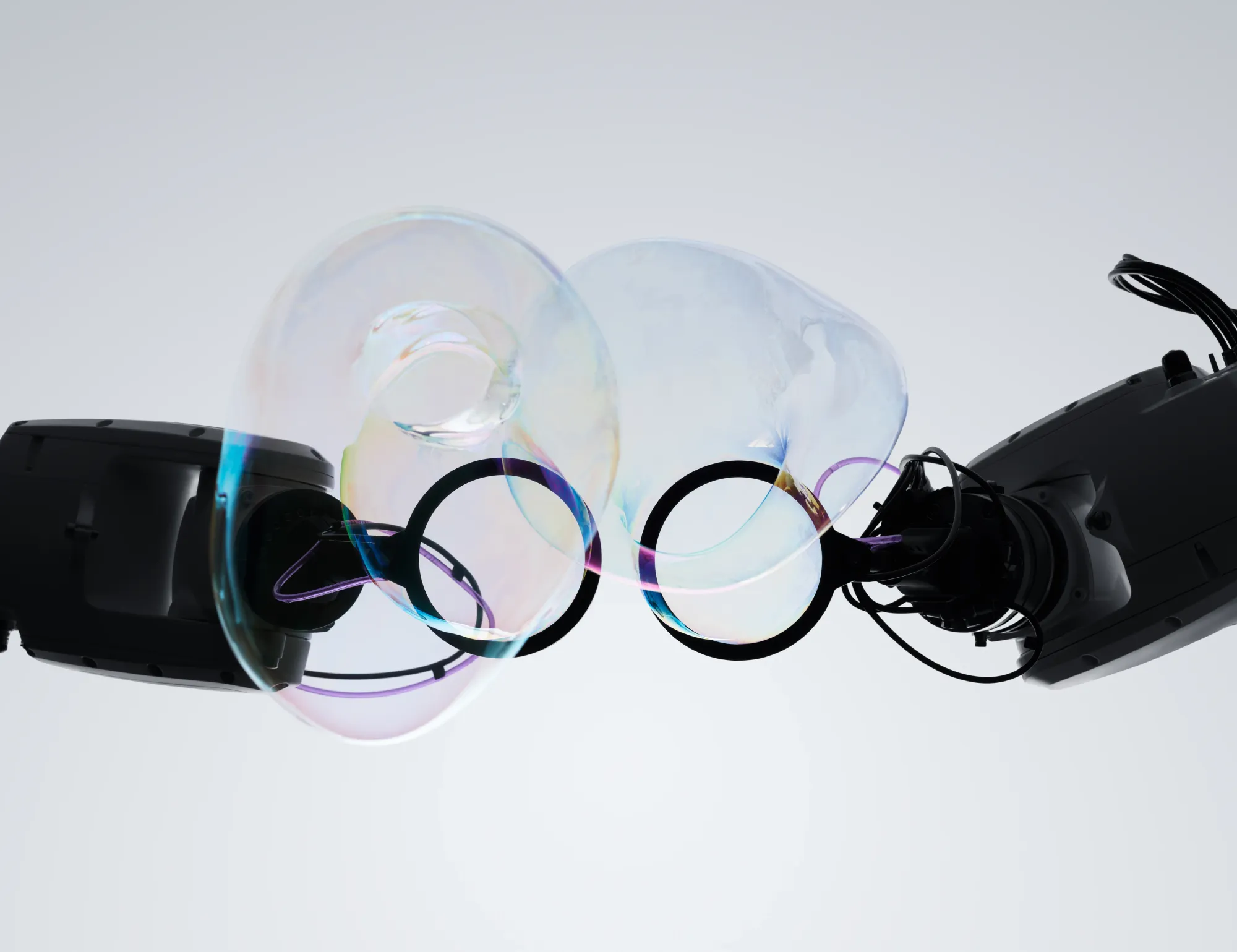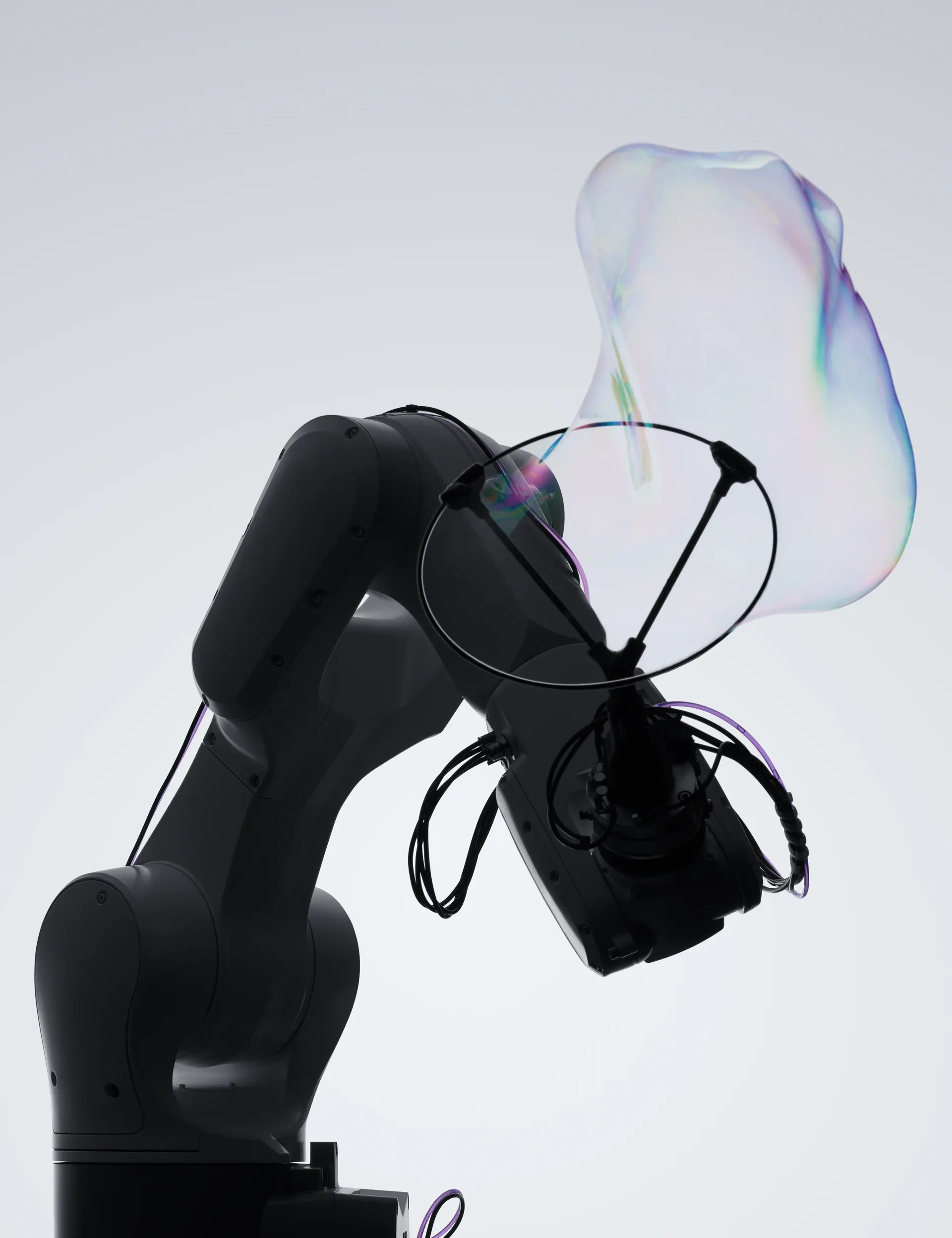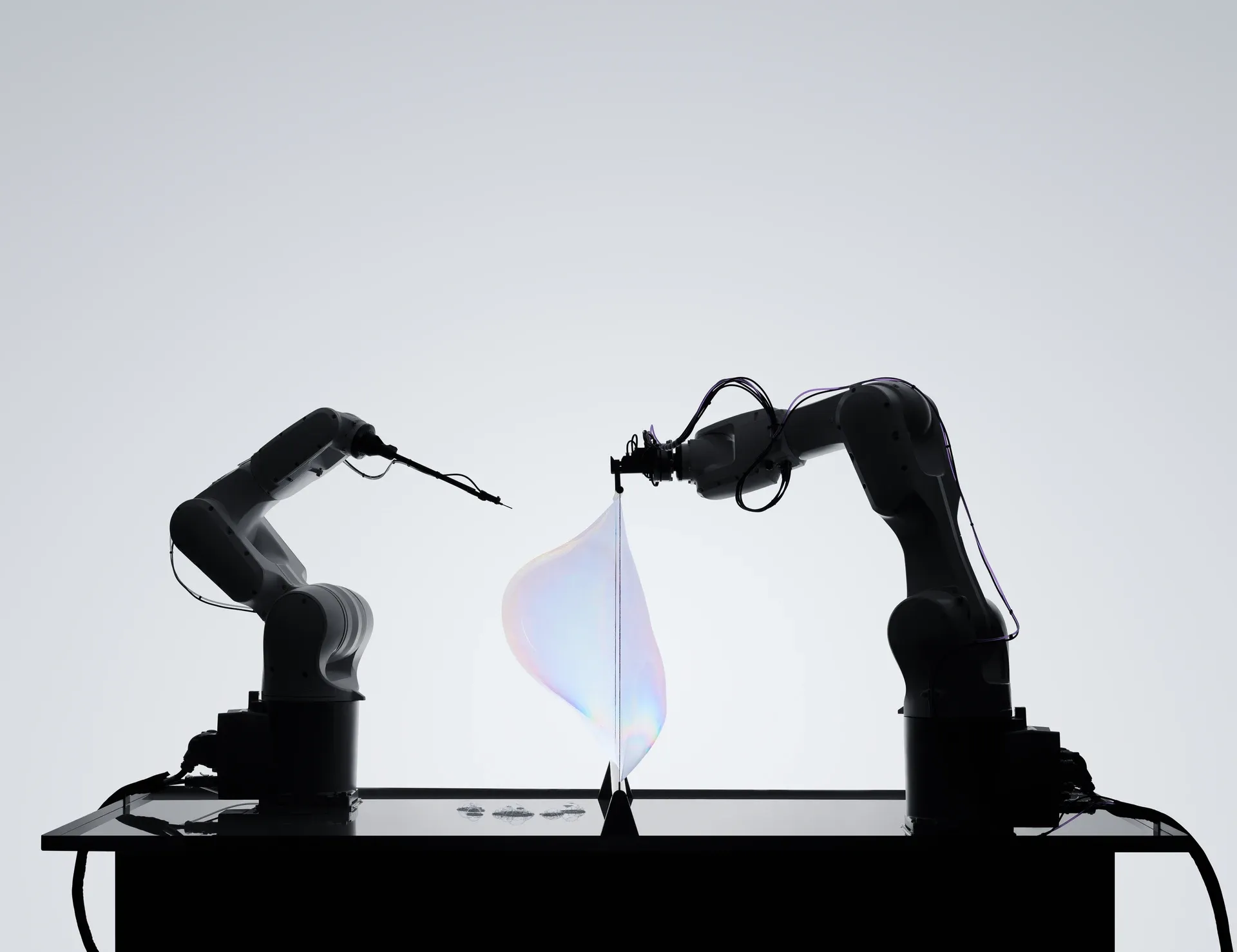 Soap films are structurally precise yet materially unstable. Their geometry is governed by surface tension and environmental conditions rather than rigid constraints. By introducing robotic precision into this system, Gentle Systems stages a controlled encounter with unpredictability.