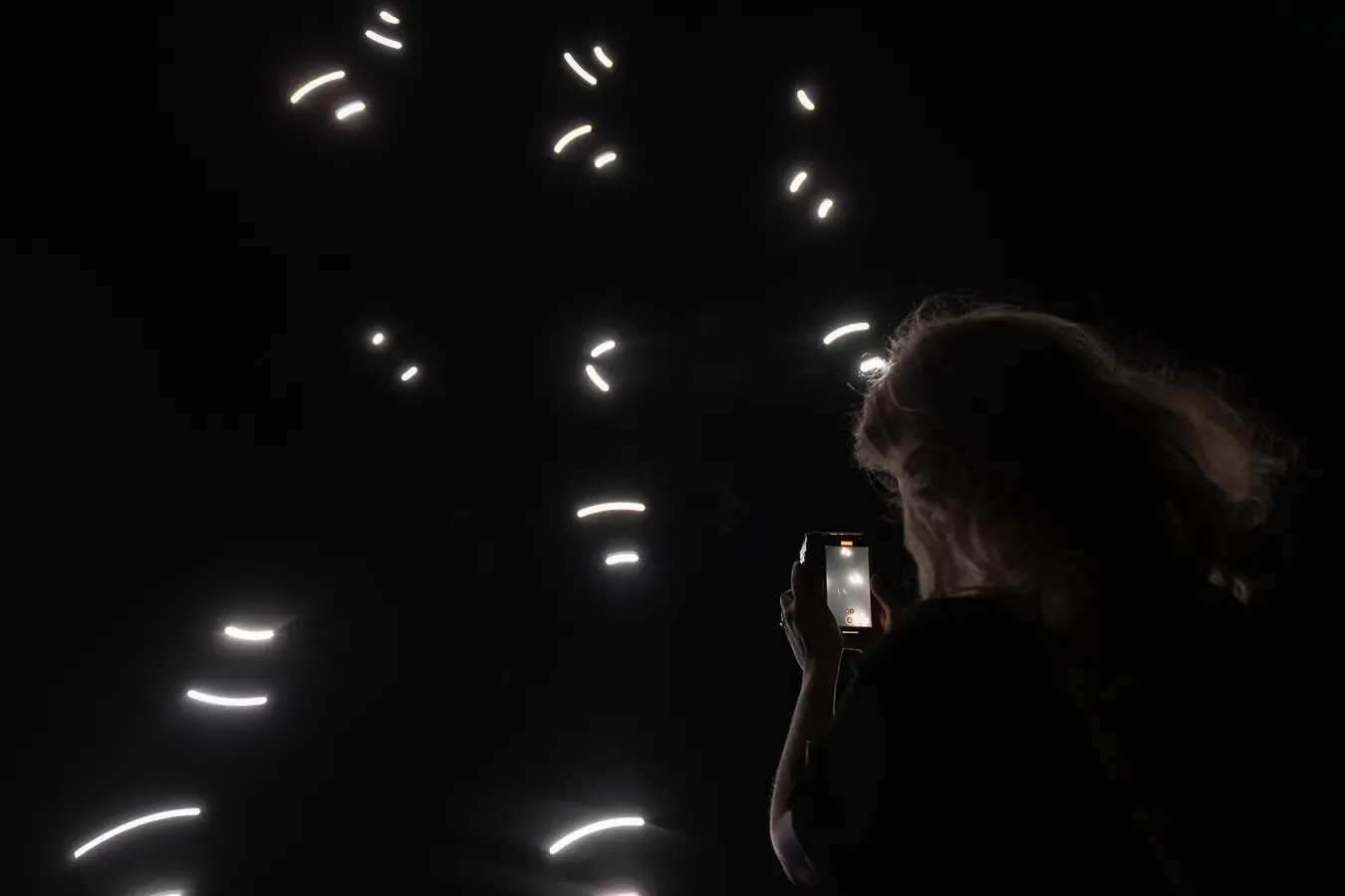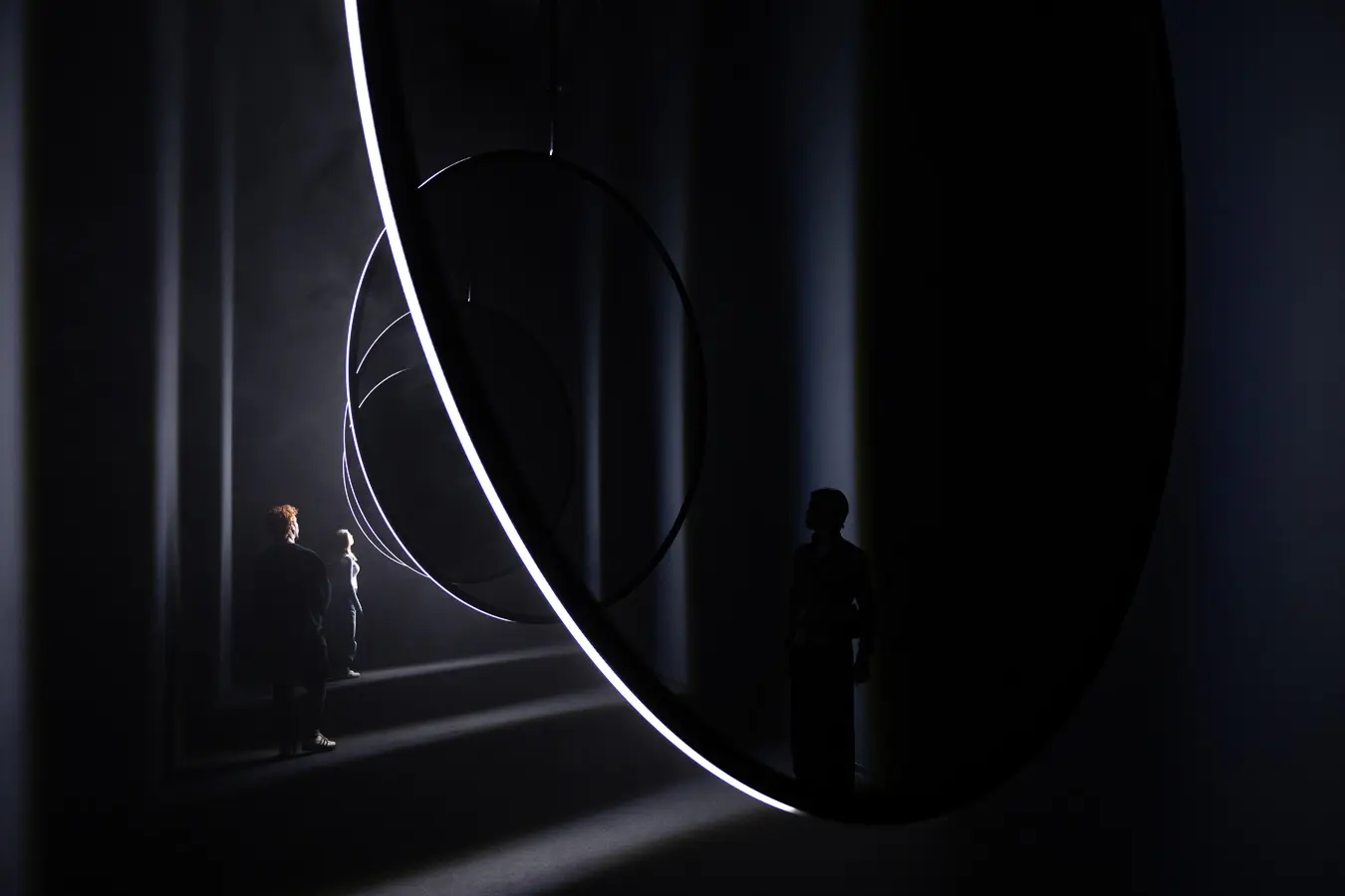 A contrasting spatial intervention comes from Children of the Light, whose ALL-TOGETHER-NOW creates a constellation of floating luminous rings inspired by the first iconic image of a black hole. Here, the interplay of light and spatial perception foregrounds the limits of visualization — especially when confronting phenomena that sit at the margins of human sensory capacities.