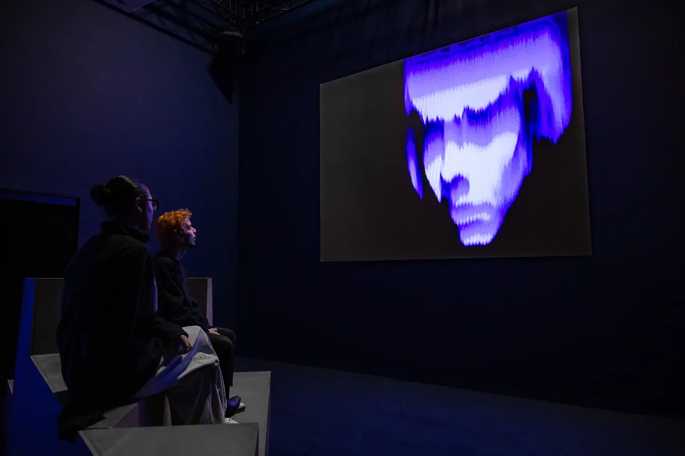 In several works, the technologies of image and sound generation are more than instruments — they become subjects of inquiry. Geoffrey Lillemon’s Simulation in Blue situates AI-generated figures in an evolving audiovisual environment, where CGI and algorithmic choreography produce a hybrid form that defies conventional categorization.