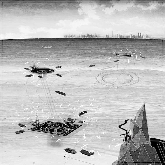 After Oil, exhibited at the Venice Architecture Biennale in 2021, imagines post-petroleum futures for Gulf economies. Its visual language is fictional, but its scaffolding is empirical: historical archives, policy documents, environmental data, and on-site investigations. This pairing of grounded data and speculative drawing allows Design Earth to surface the cultural logics embedded in infrastructure. Ethnographic design, in their hands, becomes a way to make the planetary personal—and politically legible.