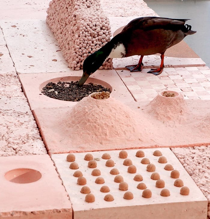 The installation featured modular components like water bowls, perches, and dovecotes that responded to the rhythms and preferences of local species. Through these elements, Studio Ossidiana designed a spatial system that adapted to both human and avian use. This is ethnographic design not in metaphor, but in method: grounded in site-specific research and guided by a sensitivity to nonhuman needs. The studio acted less like an author and more like a host, making space for shared occupancy.