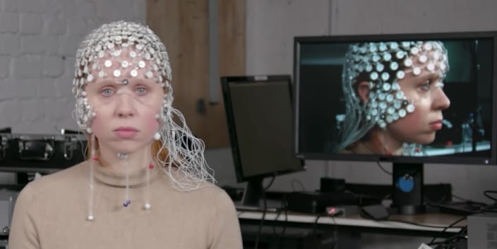 Several artists are pushing these concepts into performance art. In Symbiotic Rituals (2019), French artist Justine Emard collaborated with Alter 2 and Alter 3—humanoid robots co-developed by the Ikegami Laboratory at the University of Tokyo and the Ishiguro Laboratory at Osaka University—using deep learning algorithms that allowed the robots to respond to a dancer’s movements, generating live music and creating a real-time audiovisual feedback loop. Similarly, Anna Ridler’s Bloemenveiling (2020) combined GAN-generated visuals with AI-generated ambient audio, blending data-driven visuals and sound into an immersive installation.