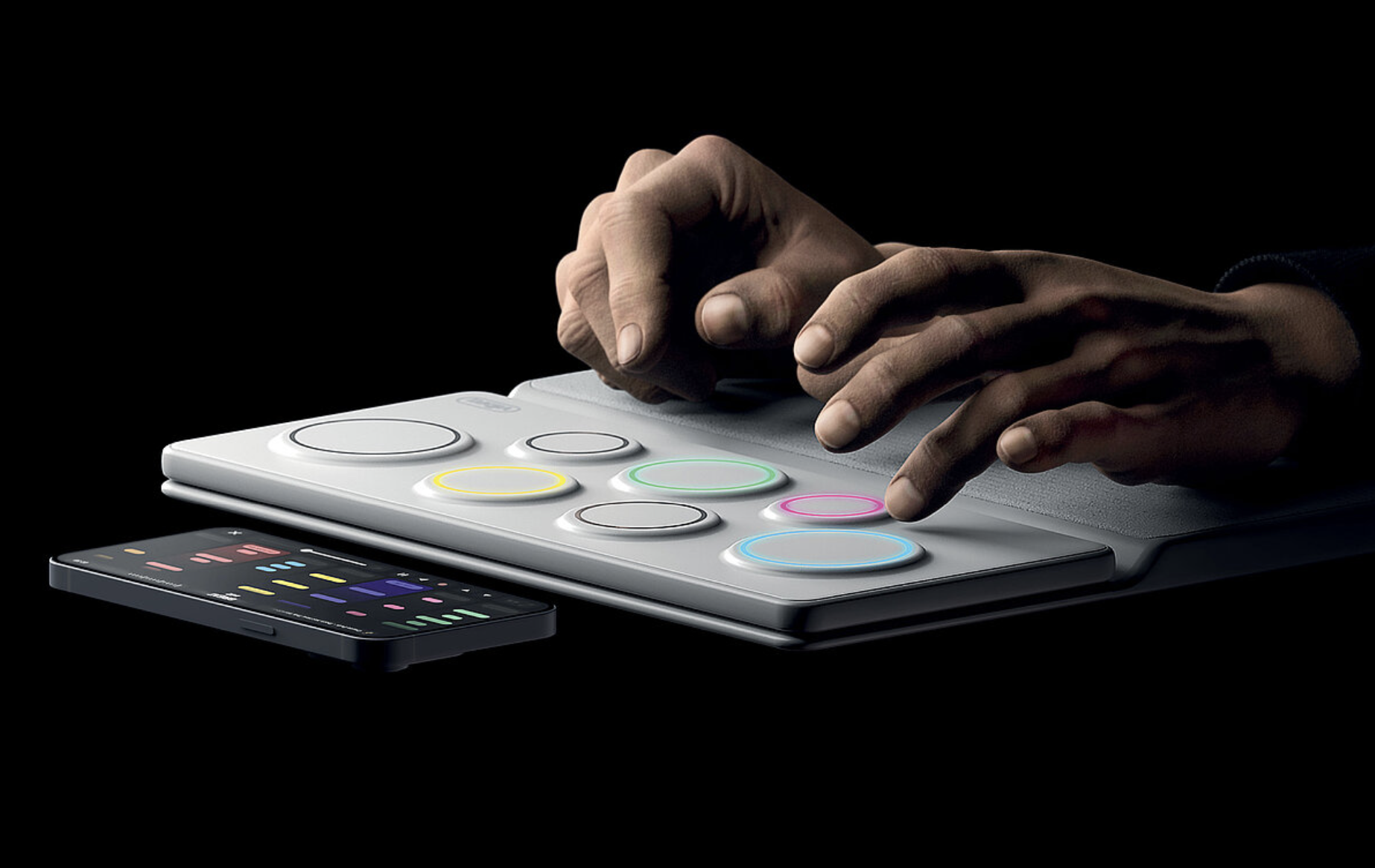 Vibra, unlike traditional instruments, relies on a combination of vibrations or haptic feedback, as well as visual cues like color and composition. Designed by Ahn Taegwang, Go Yeongseok, Hwang Jimin, Lee Wonjae, modular nature of the device contains multiple instruments, from key-based to percussive, string, and even electronic.