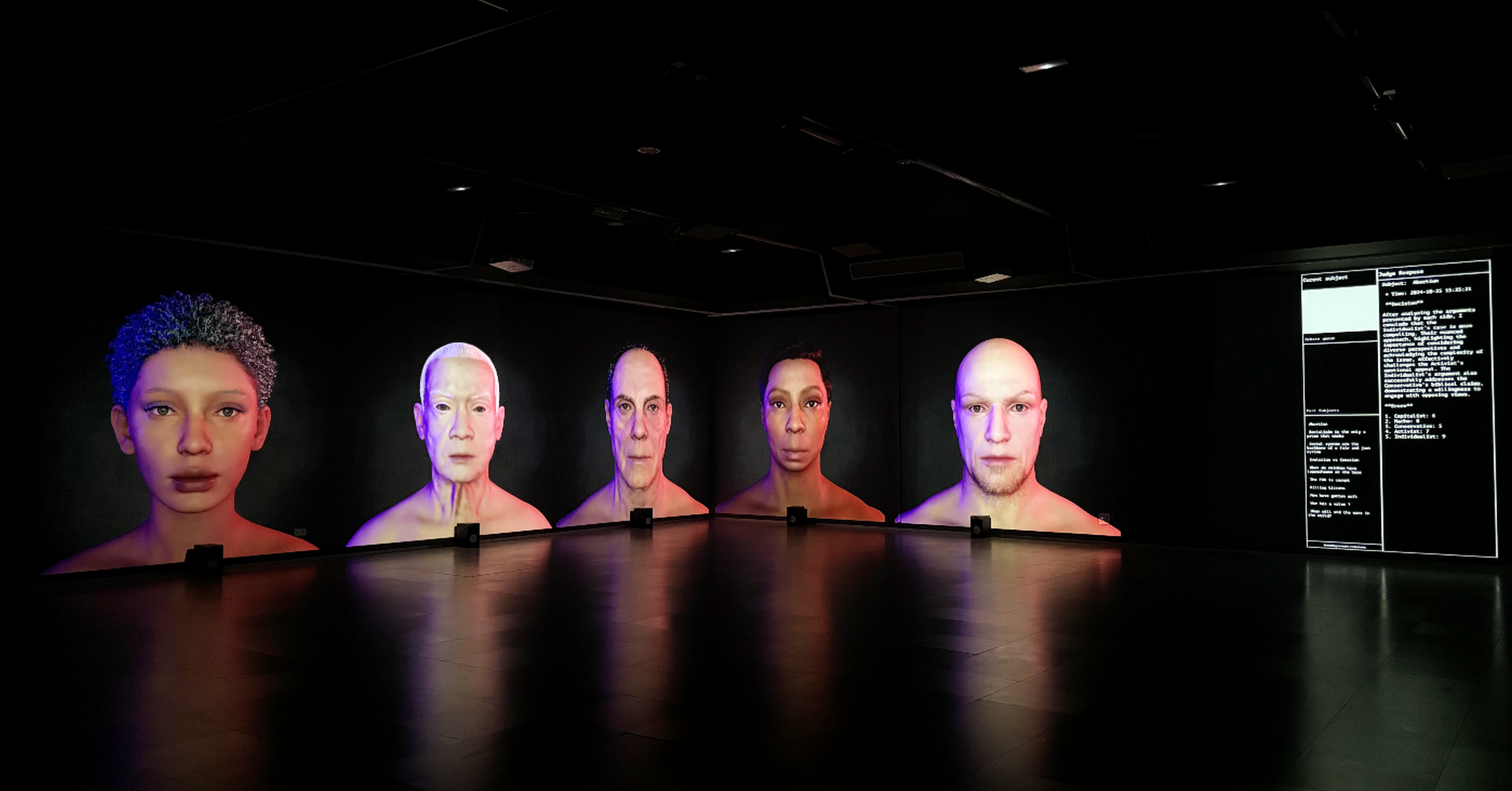 Each archetype is then rendered in hyperreal digital form using NLP tools and custom-built software. These avatars don’t just echo real-world figures—they exaggerate them, pushing their tendencies into the realm of grotesque mirror-image. It’s performance art backed by deep computational modeling.