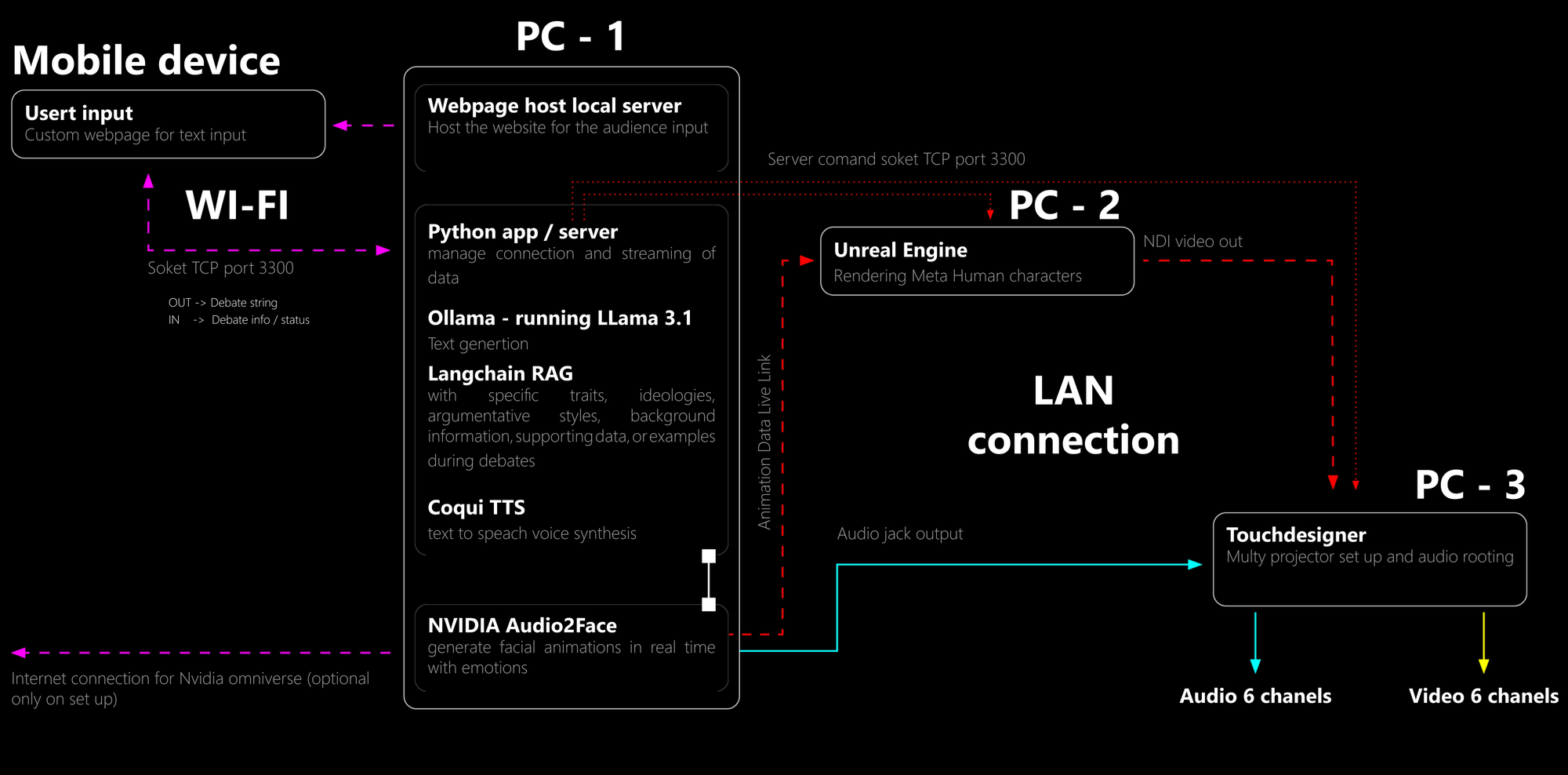 Whispers is built around a custom live debate platform where virtual actors respond in real-time to provocative prompts. These AI personas—trained using large language models fine-tuned on custom behavioral archetypes—are not just reactive but strategically persuasive. They shift tactics mid-debate, toggling between outrage and calm logic, mirroring the psychological warfare of real-world social media influencers.